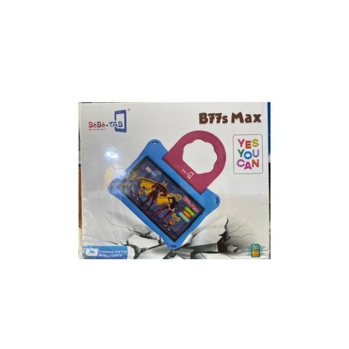 The Bebe B77s Max is a kid-friendly tablet designed for ages 2 to 12, featuring a durable design and significant storage for educational content. It runs on Android 14 and supports 5G connectivity.